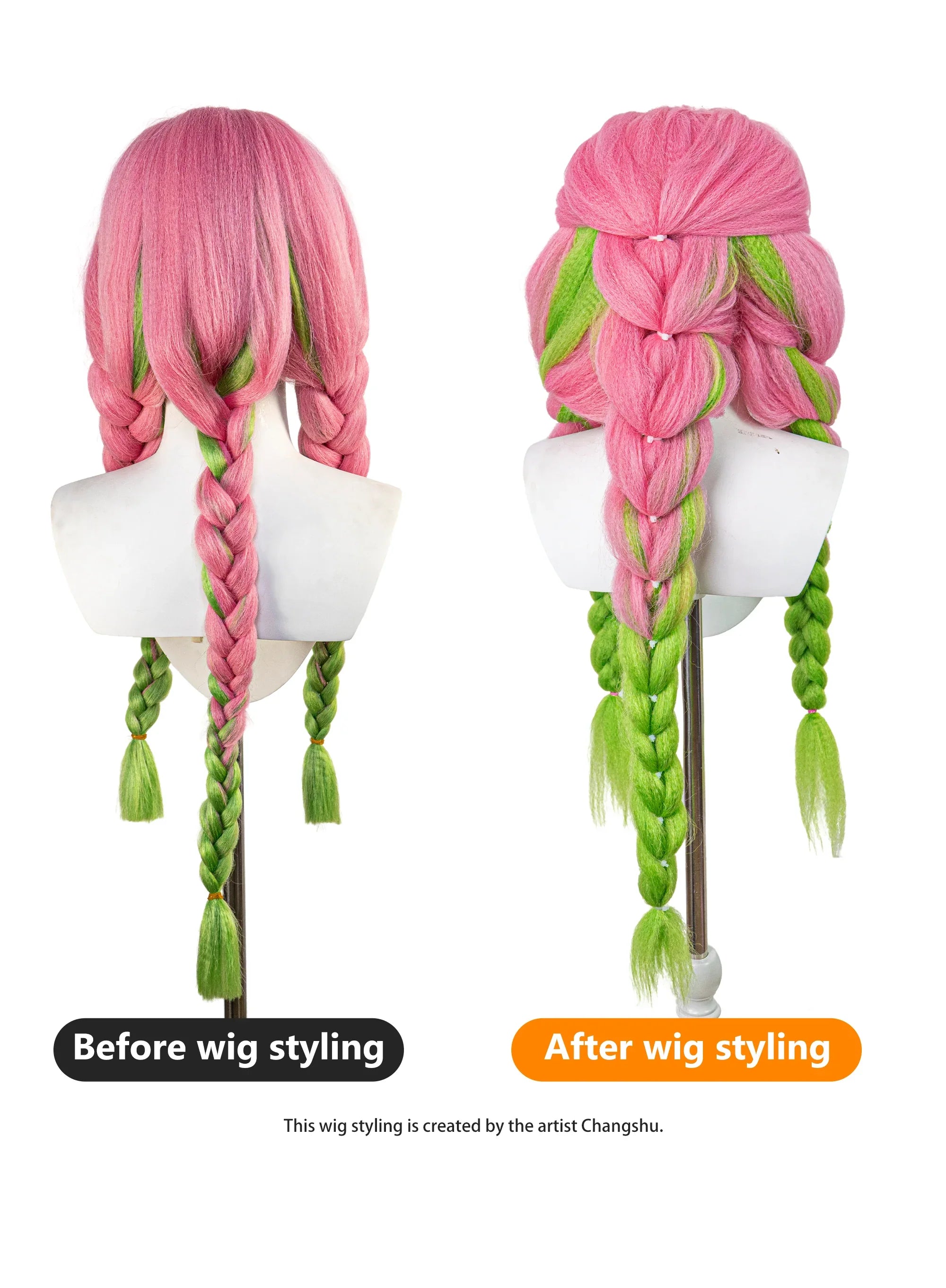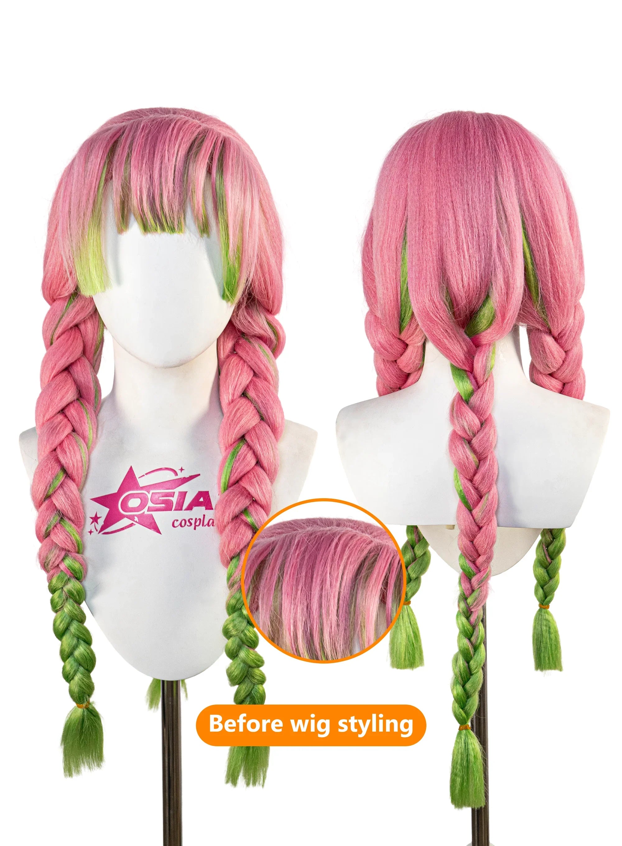 Das Set enthält: 1x Kanroji Mitsuri-Perücke, 1x Perückenkappe.