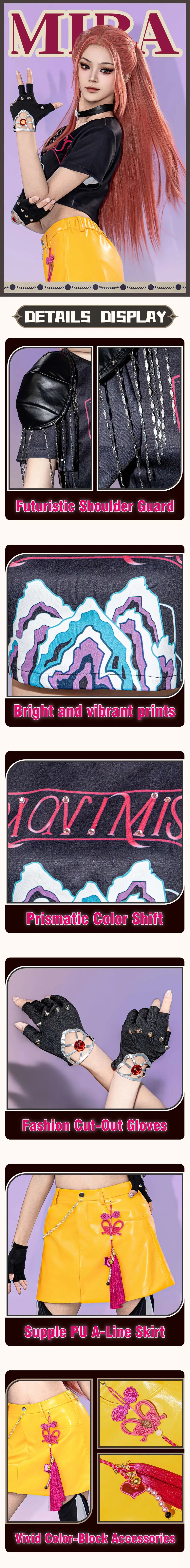 Egal, ob Sie alleine oder als Teil einer KPop-Dämonenjäger-Gruppe Cosplay machen, dieses Mira-Outfit bietet Komfort, Genauigkeit und herausragenden Stil in einem atemberaubenden Paket.