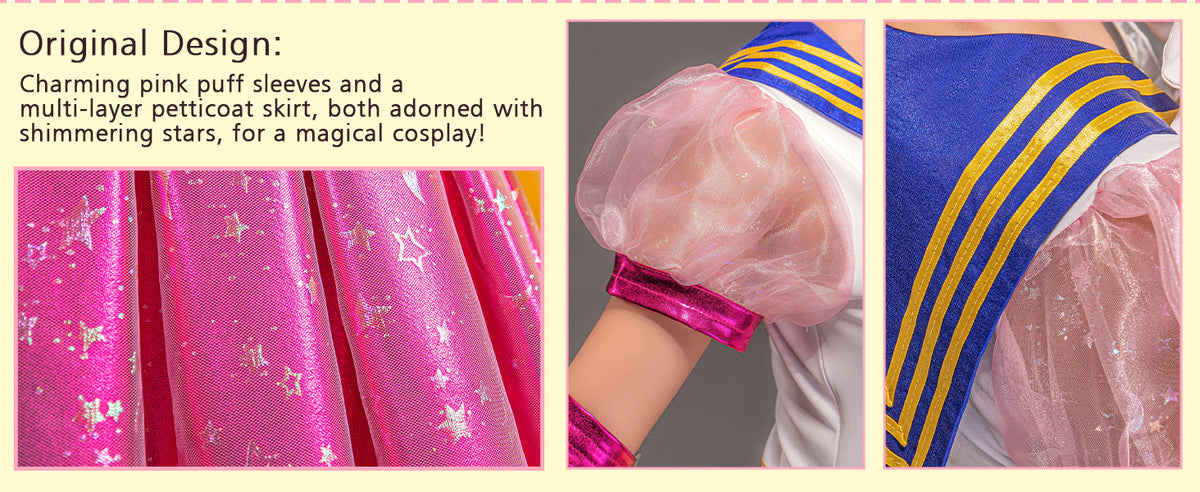 Original-Design: Bezaubernde rosa Puffärmel und ein mehrlagiger Petticoatrock, beides verziert mit schimmernden Sternen, für ein zauberhaftes Cosplay!