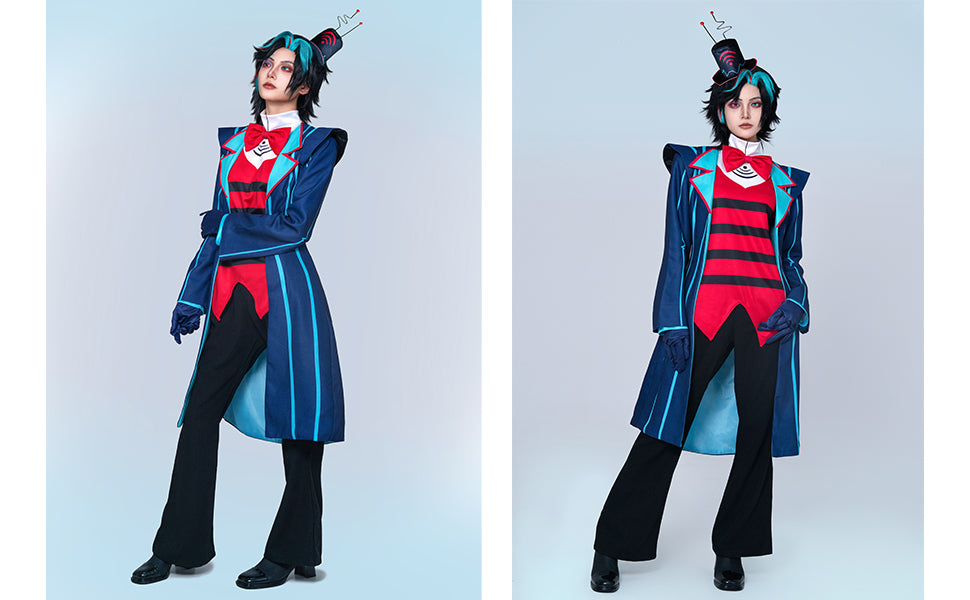 Das Cosplay hat eine deutlich bessere Qualität als andere und schöne, kräftige Farben.Normalerweise trage ich Größe EU XS/S (Damen), aber hier musste ich Größe M nehmen. Es fällt also klein aus, weshalb man meiner Erfahrung nach eine größere Größe nehmen sollte.- Der Mantel ist sehr schön genäht und qualitativ. Die Streifen sind schön gerade, die Schulterpolster sitzen perfekt und die Materialien sind hochwertig. An den Ellenbogen machen die Streifen sogar ein zickzack- Detail wie beim Charakter, was ich sehr schön finde. Ich habe den Mantel selbst noch minimal umgenäht, damit er unten die typische Form wie beim Charakter hat.- Das rote Oberteil ist von super Qualität und hat schöne, kräftige Farben. Dem habe ich nichts entgegenzusetzen. Es wird mithilfe eines langen Reißverschlusses am Rücken verschlossen. Das Material empfinde ich als angenehm und perfekt dick.- Die Hose ist sehr schön geschnitten und wird mithilfe eines Knopfes und Reißverschlusses verschlossen. Sie hatte bei mir die optimale Länge (, und weil ich sehr schlank bin, habe ich Sie an der Taille etwas enger gemacht, was problemlos ging). Die Form der Hose passt sehr gut zum Charakter.- Die rote Fliege ist sehr schön, aus einem schönen Material und hat die perfekte Größe. Sie wird mit einer (Art angeklebten) Sicherheitsnadel befestigt und hält gut.- Die Handschuhe würde ich etwas bemängeln. Für mich waren die Finger viel zu lang und der Handschuh selbst zu kurz. Deshalb habe ich mir andere besorgt.- Der Hut kam bei mir etwas zerknickt an, was ich verstehen kann. Ich habe mir einen anderen selbst gebastelt, weil ich diesen hier nicht so schön fand, aber er geht schon in Ordnung und wäre funktionstüchtig. Bei den roten Kugeln handelt es sich um angeklebte Holzperlen.Zusammenfassend kann ich sagen, dass es sich um ein qualitatives Cosplay aus angenehmen Materialien mit kräftigen Farben handelt, welches schön geschnitten ist. Handschuhe und Hut würde ich etwas bemängeln, aber die Kleidung ist so schön, dass es trotzdem fünf Sterne gibt. Das Kostüm ist wahnsinnig detailreich (; es fehlt nur noch die "Schwanzflossen-Form" beim Mantel, zu welcher er sich einfach umnähen lässt, wenn man möchte).Ich würde es wieder kaufen, es ist das beste Vox-Kostüm, das ich in Europa für einen bezahlbaren Preis finden konnte. Vielen Dank!