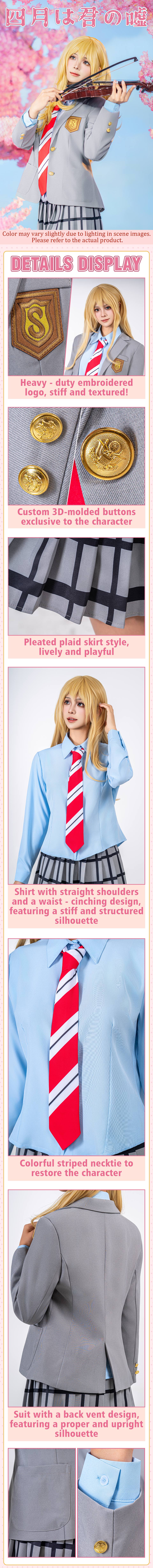 Utilisation : Parfait pour le cosplay de Miyazono Kaori, la bande dessinée, la convention d'anime, la fête, Halloween et plus encore.