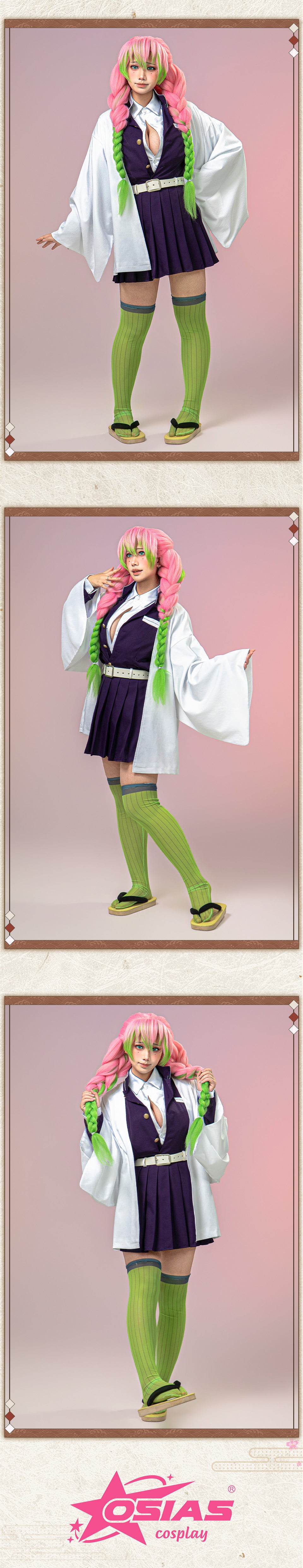 Capture the charm and strength of the Love Hashira with the most structurally accurate Kanroji Mitsuri cosplay available. Part of the Osias Project 2026 Remastered Series, this costume replaces flimsy fabrics with tailored precision.