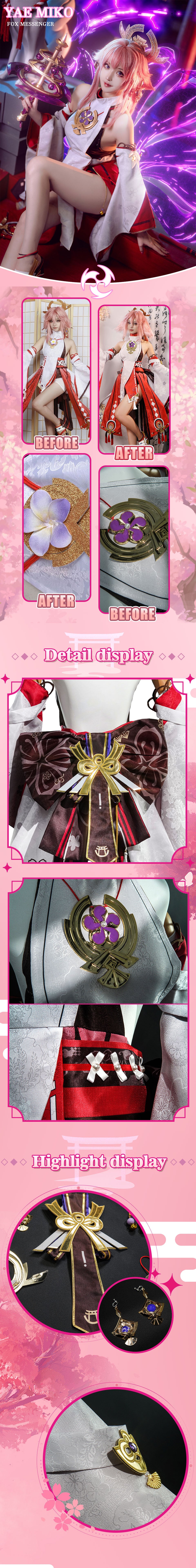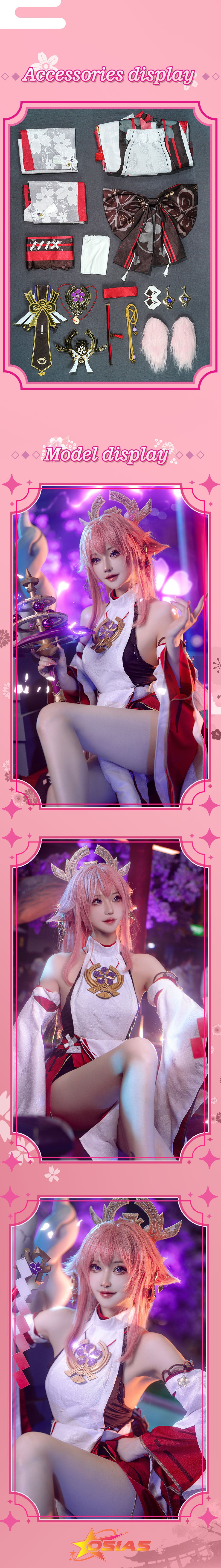 Osias crafted the Genshin Impact Yae Miko cosplay costume with soft, premium fabrics, elastic waistband, and 3D-printed accessories for an accurate, true-to-US-size fit.