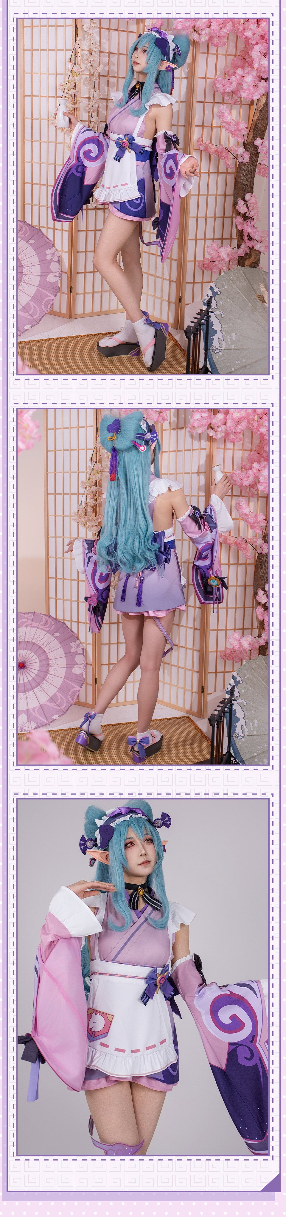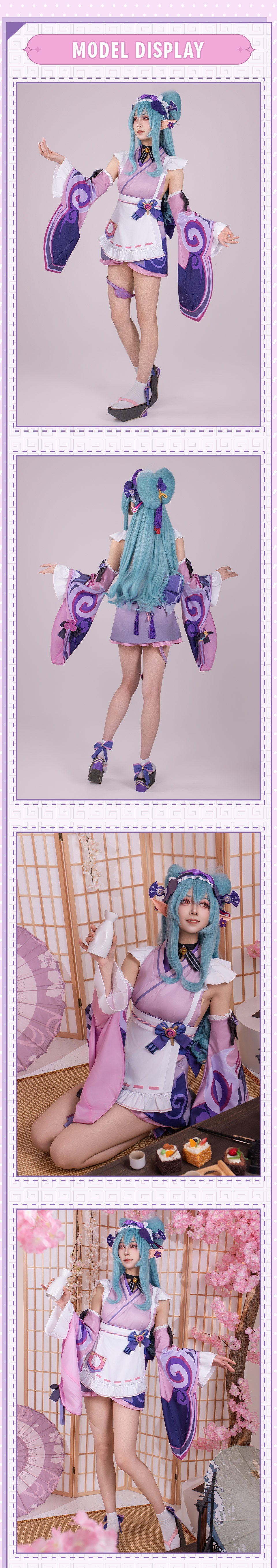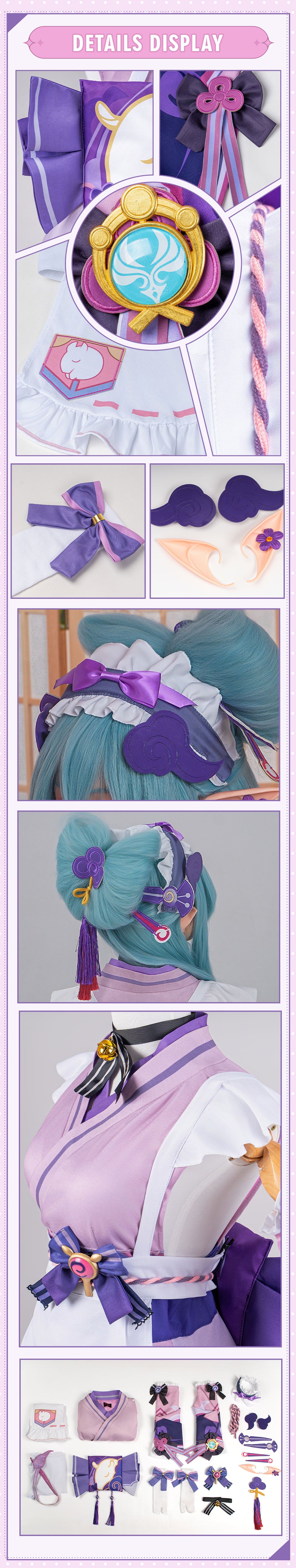 Osias crafted the Genshin Impact Yumemizuki Mizuki cosplay costume with soft, durable fabrics, tailored fit, cinched waist, full-sleeve prints, and embroidered, detailed accessories.