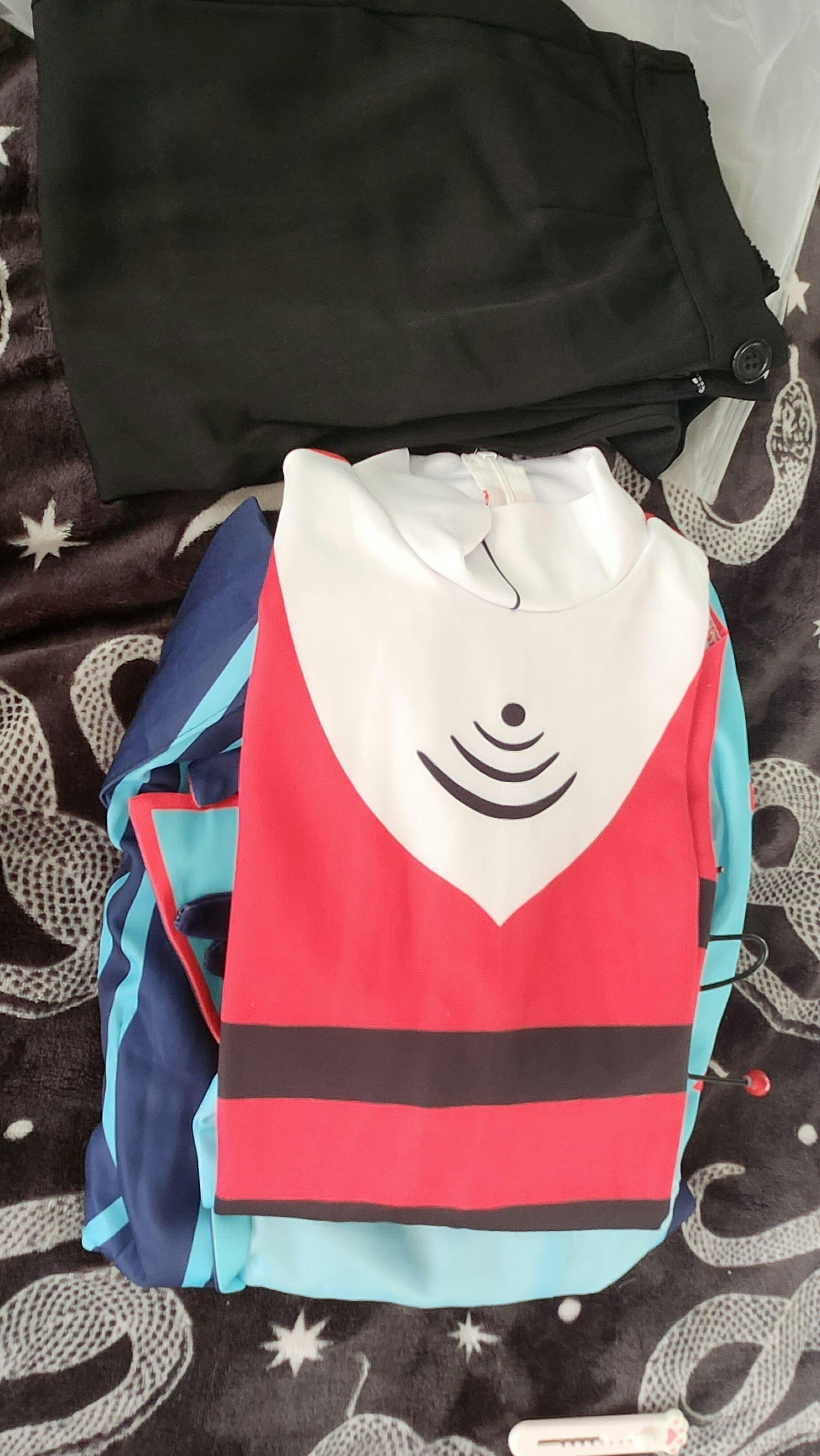 We crafted the Hazbin Hotel Vox cosplay costume in skin-friendly fabric, featuring structured shoulders, flared elastic-waist pants, gloves, hat, and true US size fit.