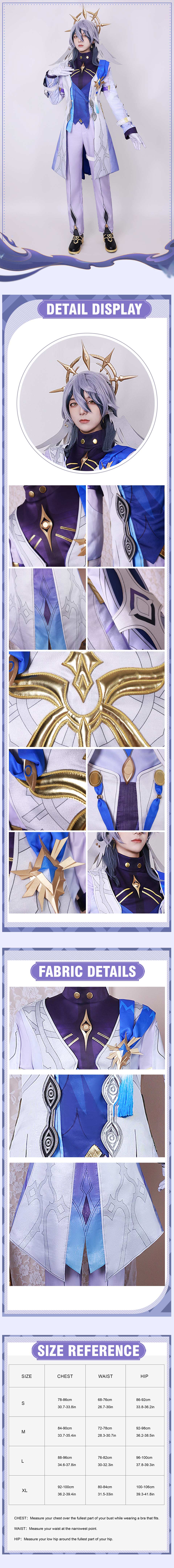 Osias crafted the Honkai Star Rail Sunday cosplay costume with soft silver shimmer fabric, layered color design, cinched waist, 3D-molded accessories, and gold-stitched leather details.