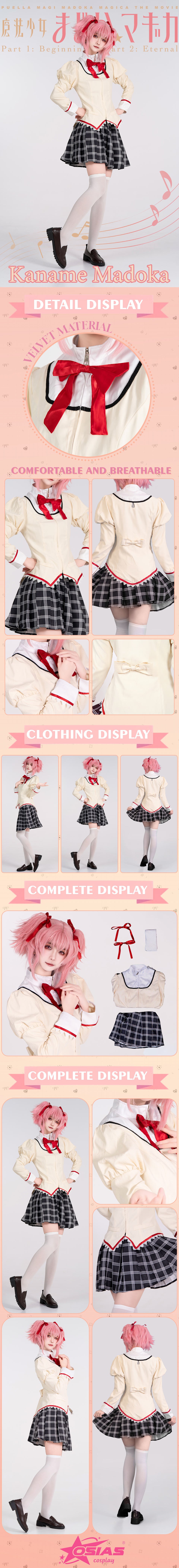 We crafted the Madoka Magica Kaname Madoka cosplay costume in peach skin velvet with soft handfeel, heart-cut back, gem bow necklace, and true to US size fit tailored.