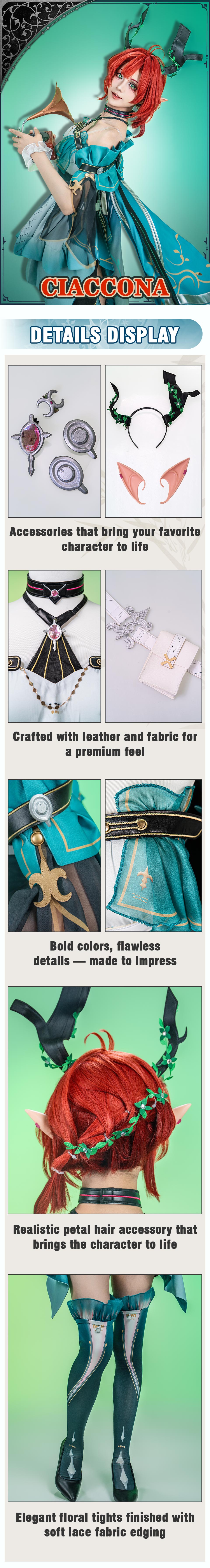 Osias crafted the Wuthering Waves Ciaccona cosplay costume with soft, breathable fabric, a cinched waist, and detailed accessories, delivering an authentic, stylish character look.