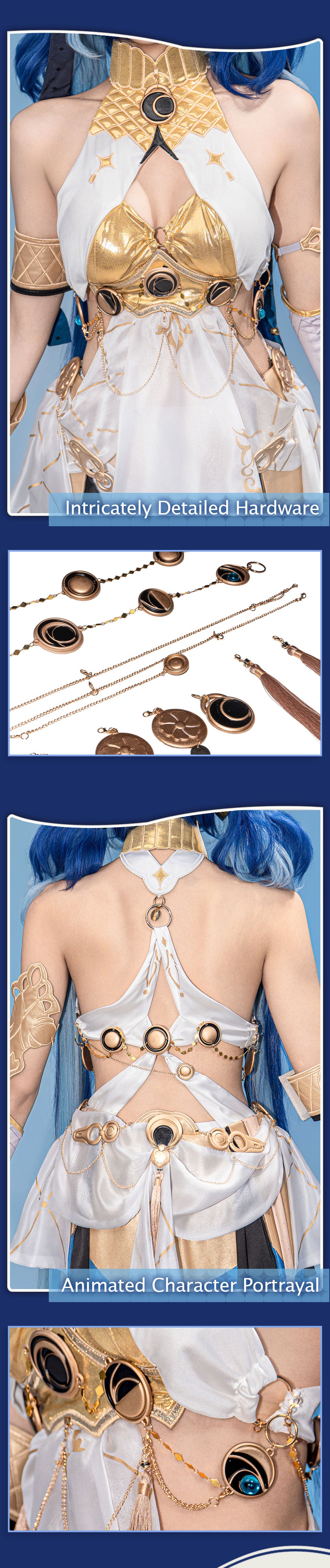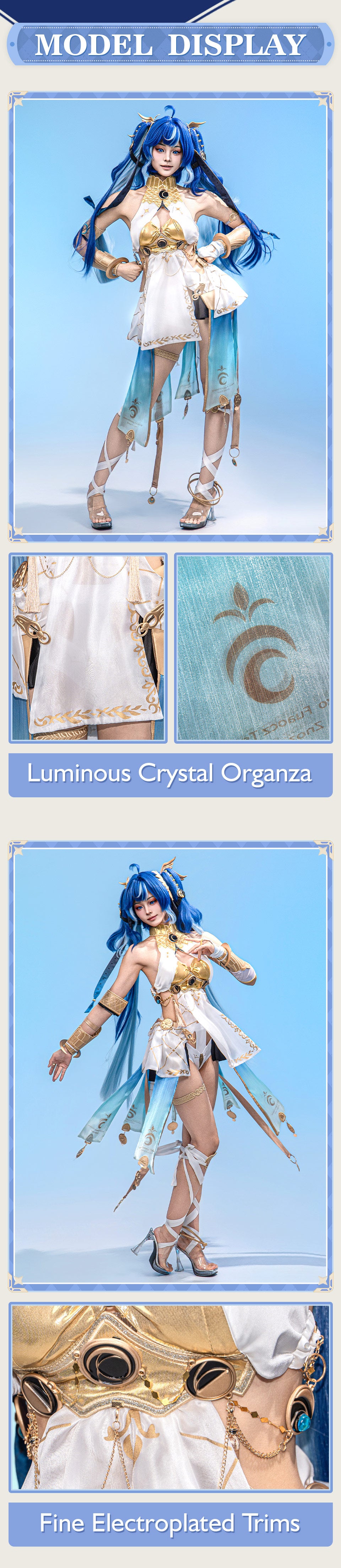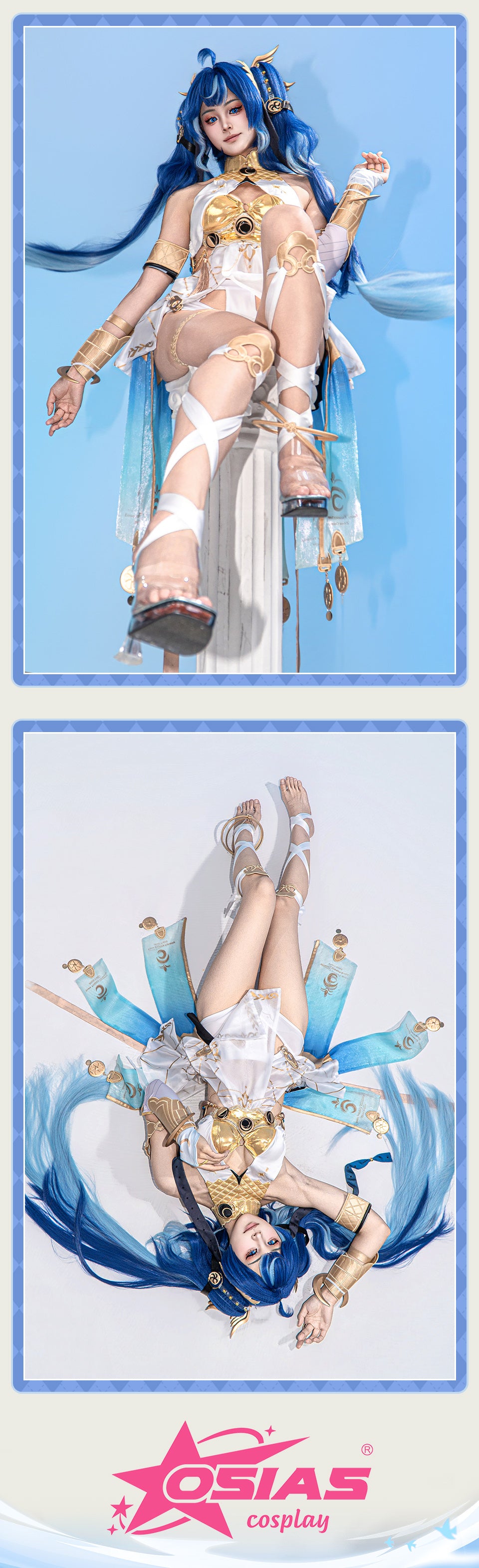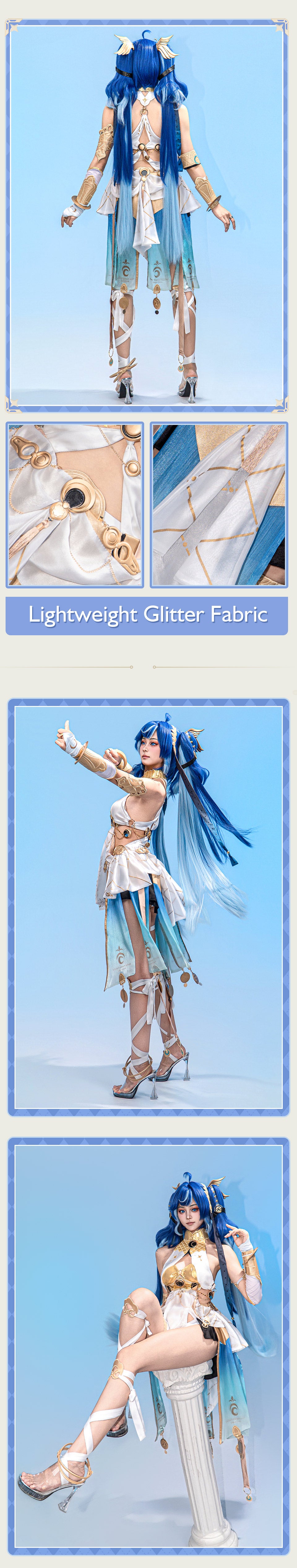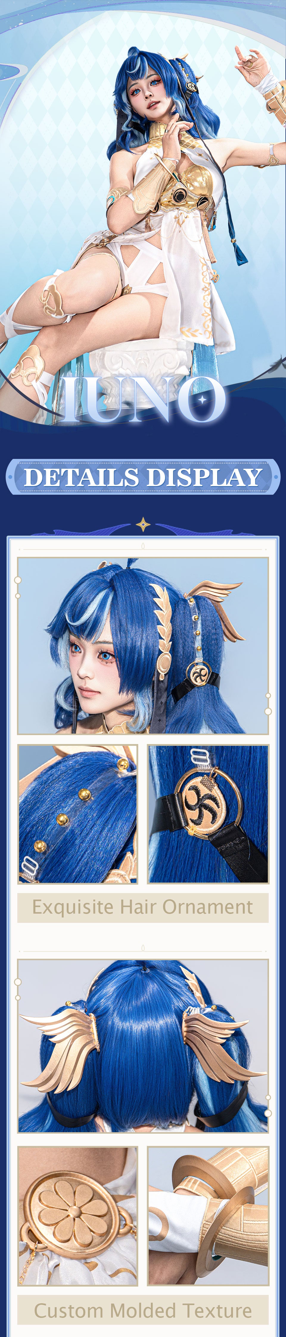 Osias crafted the Wuthering Waves Luno cosplay costume with full accessories, soft durable fabric, elegant white-blue design, and precise ornaments for authentic cosplay appeal.