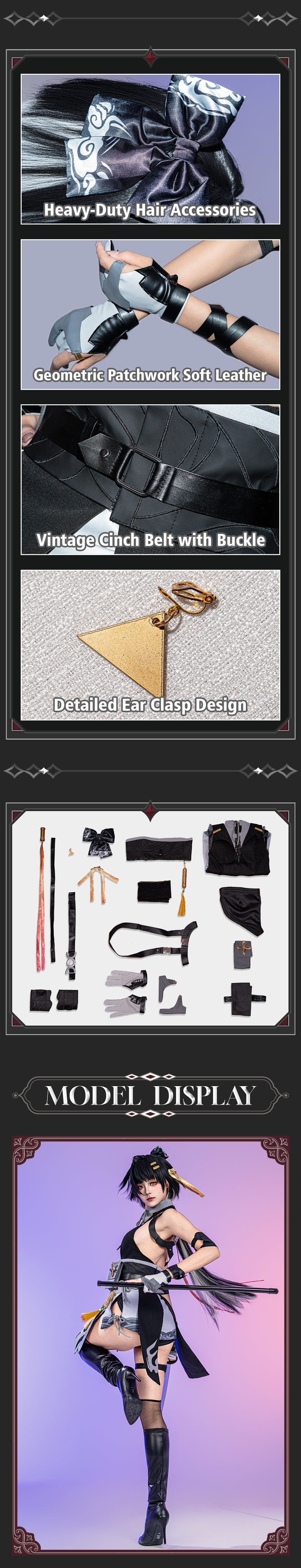 Osias crafted the Wuthering Waves Rover cosplay costume full set with jumpsuit, headwear, and gold-accented accessories, made from soft, durable fabric for a comfortable, stylish fit.